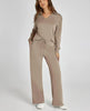The mechanism is a perfectly coordinated set, featuring a chic v-neck collared long sleeve top and matching drawstring wide-leg pants, all crafted from a premium, soft, and breathable fabric.
