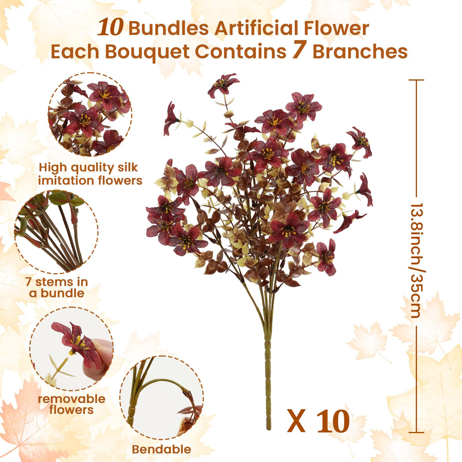 ✔ GET HYPER-REALISTIC ELEGANCE THAT TRICKS THE EYE The silk blooms have a veined texture and color gradation, while flexible steel-wire stems bend to 180° to create natural, overflowing arches that look completely real.