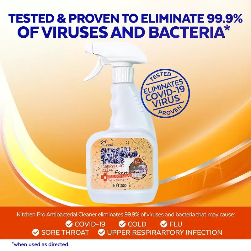 KILLS 99.9% OF KITCHEN GERMS Proven to eliminate viruses and bacteria, including Salmonella & E. Coli, this antibacterial spray is SGS tested and ISO certified for a truly healthy kitchen.