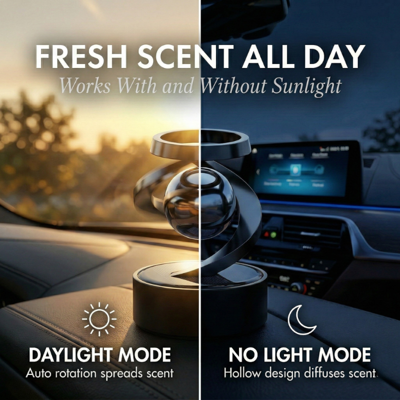 ✔ NO MORE SCENT THAT FADES BY LUNCHTIME — ENJOY FRAGRANCE THAT FILLS YOUR WHOLE CAR - The dual air duct system with upper and lower flow guides accelerates airflow as the sphere spins, circulating plant-based essential oils evenly throughout your vehicle. At night, the hollow design allows natural diffusion — so your car stays fresh 24/7.