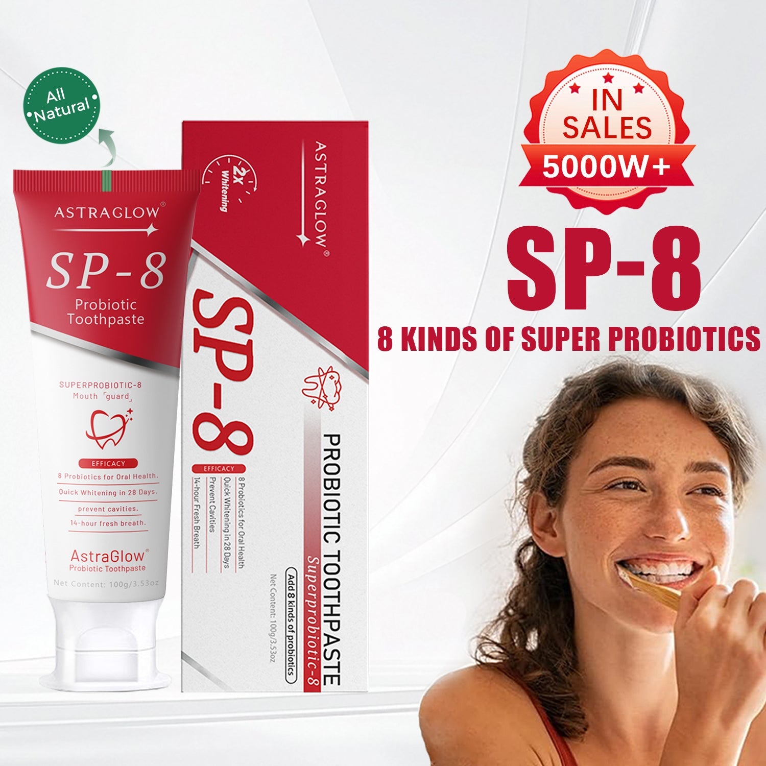 But what if your toothpaste could whiten, strengthen, and soothe all at once? The AstraGlow SP-8 is different. Its mechanism is a unique dual-action formula that combines Hydroxyapatite—the very mineral your enamel is made of—with beneficial Probiotics.
