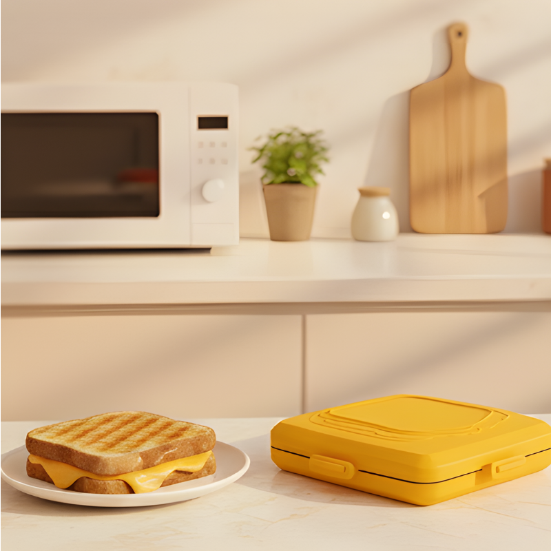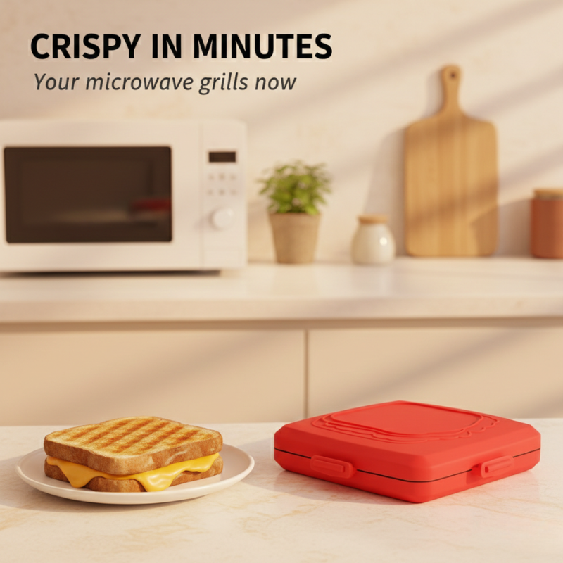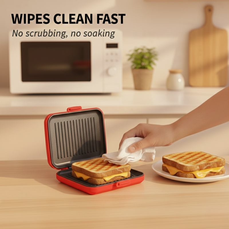 ✔ SKIP THE STOVETOP, THE PREHEAT, AND THE MESS — READY IN MINUTES - Just load your sandwich, close the lid, and microwave for 2–3 minutes. No preheating, no flipping, no greasy pans — the non-stick grill plates release your food instantly and wipe clean in seconds.