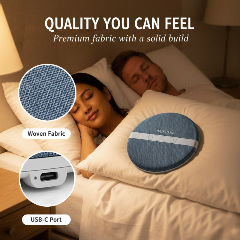 Can I actually hear it through a thick pillow? Yes — Driftone™ features a 40mm full-range speaker with Bluetooth 5.4 for clear, immersive audio. It works best placed directly under your pillowcase or under a standard pillow. For very thick memory foam pillows, we recommend placing it between your pillowcase and pillow for best results.