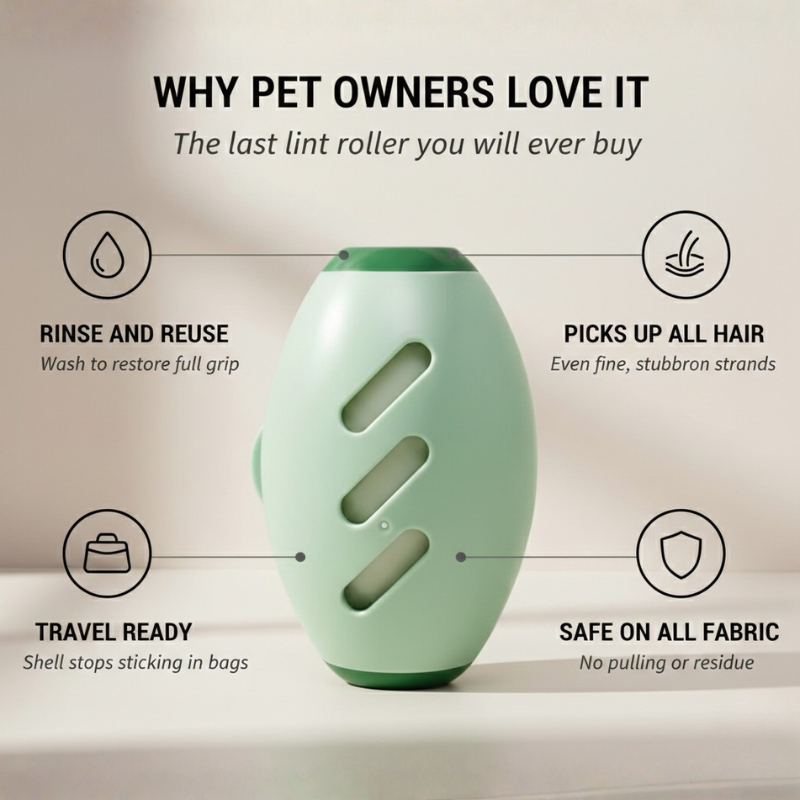 You're dressed, you're ready — and then you look down. Pet hair. Everywhere. On your favorite black pants, across your coat, clinging to the couch where you just sat for two seconds. Traditional lint rollers run out of sheets mid-use, leave sticky residue, and fill your trash can week after week — but the Furwell™ Reusable Gel Roller changes all of that with a washable sticky gel surface that restores itself under running water.