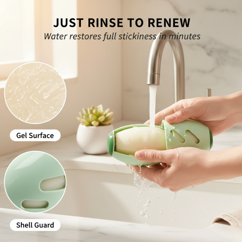 • How do I clean it and restore the stickiness? Simply rinse the gel surface under running water, gently rub off any debris with your fingers, and let it air dry. Once dry, the full stickiness is completely restored and ready to use again.