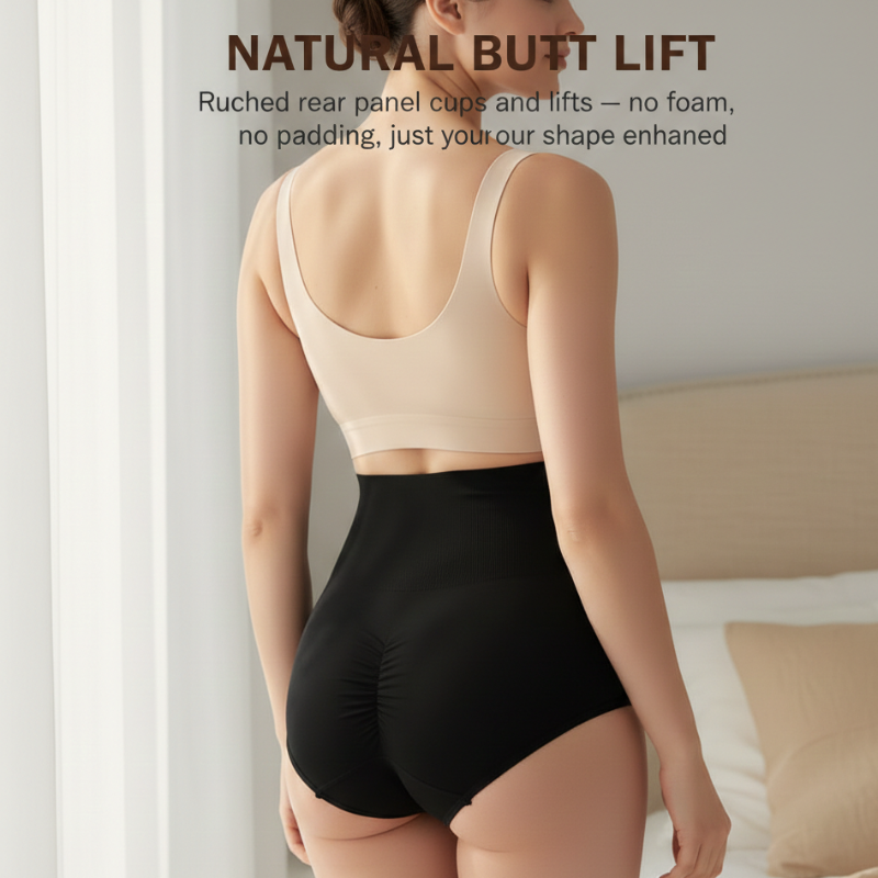 ✔ Ruched rear panel lifts your butt without padding — the gathered fabric gently cups and lifts for a natural, rounded shape. No foam inserts. No fake look. Just your own shape, enhanced.