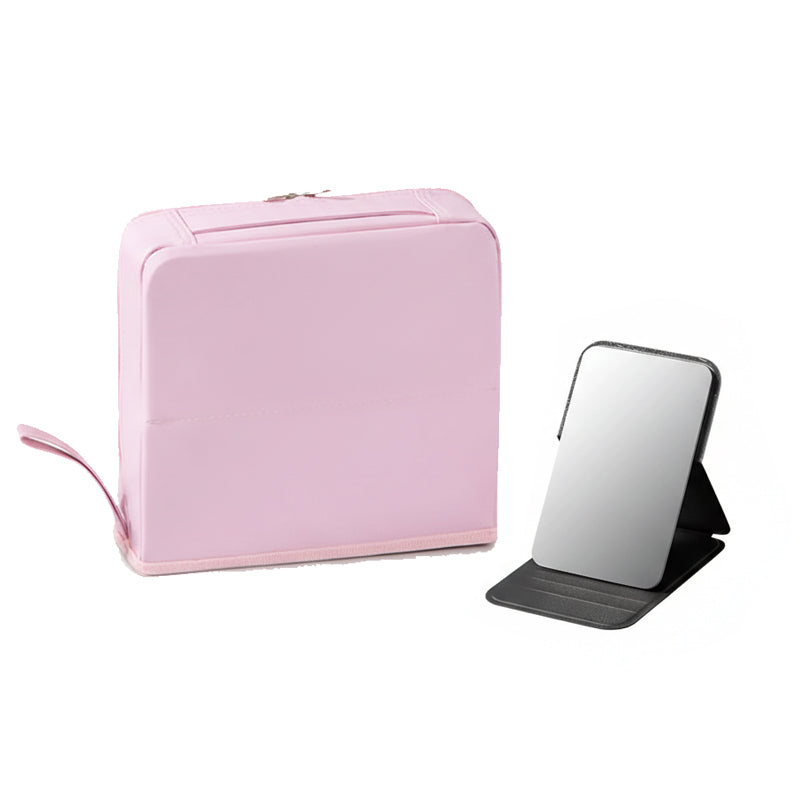 While old-fashioned "pouch" bags bury your expensive cosmetics in a dark, tangled mess, the LuxeLayout uses a 180-degree architectural fold to transform from a compact carrier into a structured, flat-surface workstation.