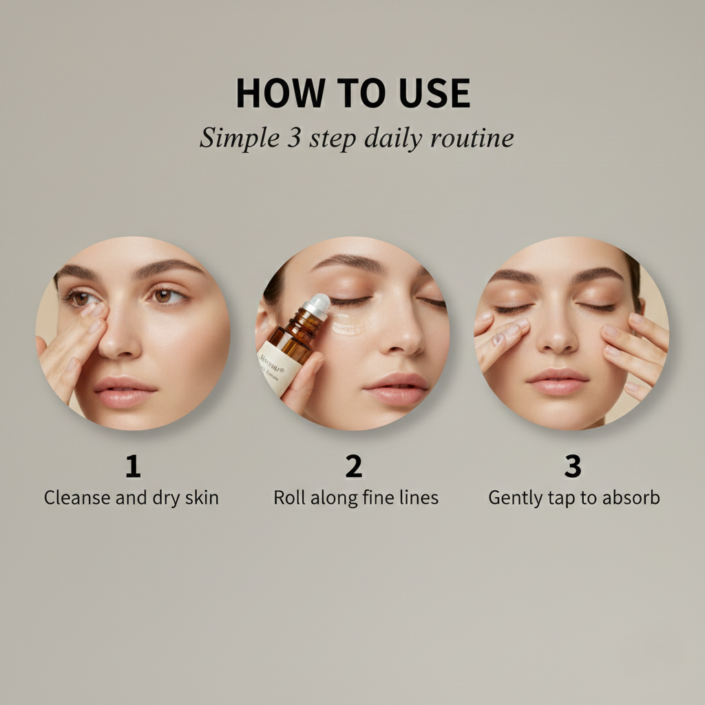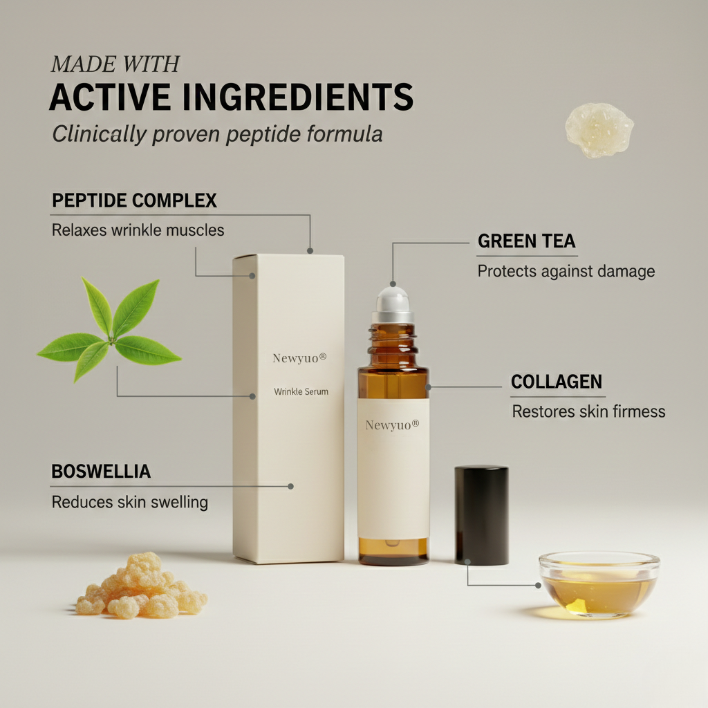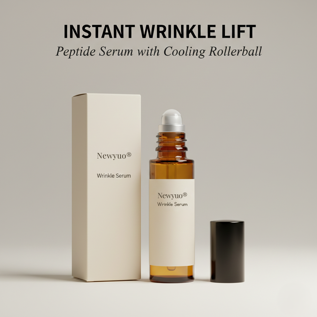 Newyuo uses a precision cooling rollerball to deliver a concentrated peptide-tightening formula directly into every crease — forming an invisible, breathable micro-film that pulls surface wrinkles smooth while Acetyl Hexapeptide-8 and Hyaluronic Acid lock the firming effect in place for hours of crease-free wear.