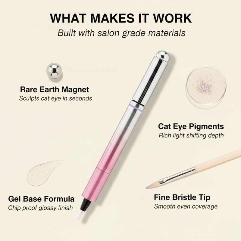 The Opella™ Cat Eye Nail Gel Pen changes everything — one elegant pen replaces your entire manicure station.
