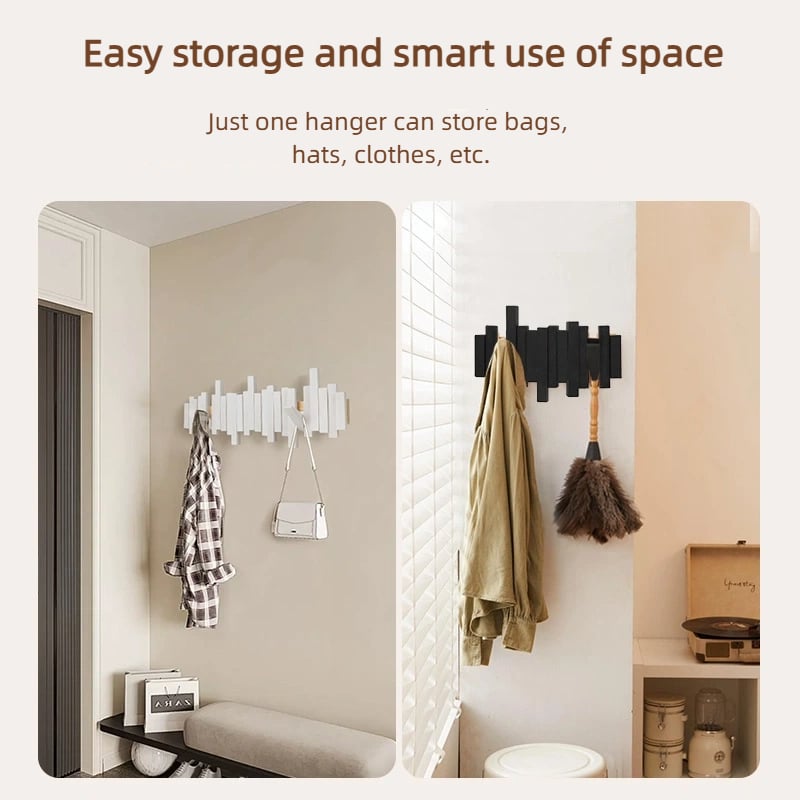 But what if you could combine artistic piano key design with practical storage? This is not a common hook rack. The mechanism is a Wall-mounted wooden coat rack featuring a Piano Key Style Design.