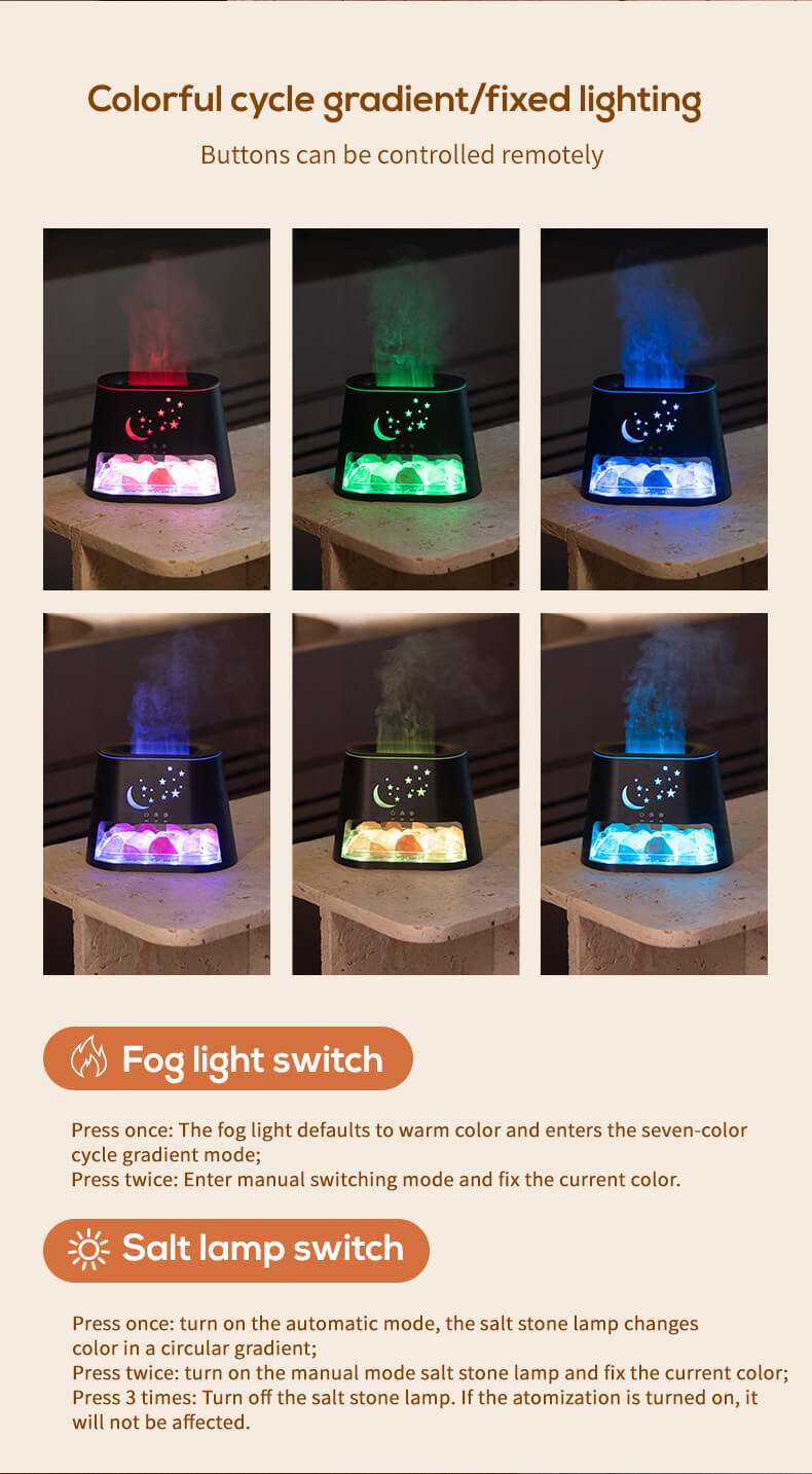 Product: Salt Flame Aroma Diffuser – Ultrasonic LED Humidifier