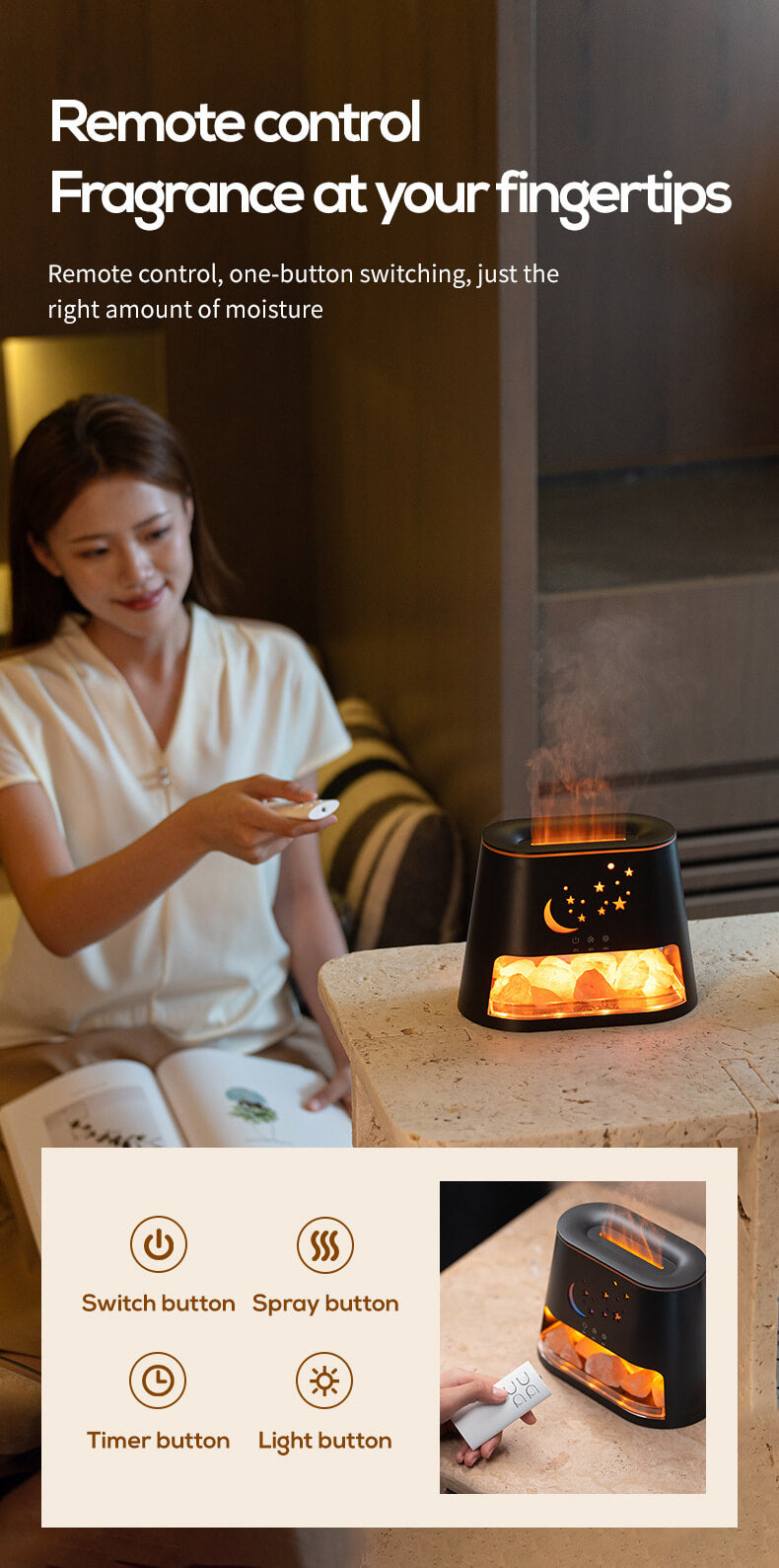 You want to transform your space into a peaceful sanctuary and enjoy stress relief, aromatherapy, or cozy nights. You're frustrated with humidifiers that are loud, lack style, or fail to effectively diffuse essential oils.