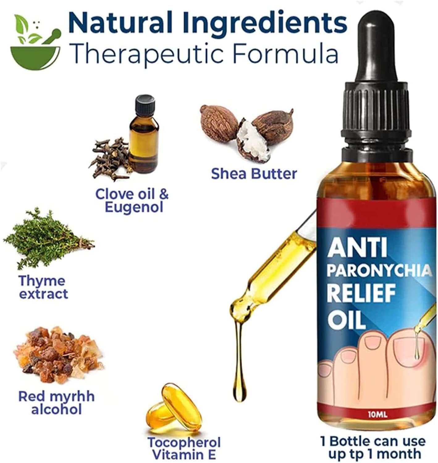 This design utilizes a precision dropper for targeted application, ensuring the potent formula reaches deep into the affected area. Each bottle contains 10ml of concentrated relief oil designed to show visible results in as little as 4 weeks.