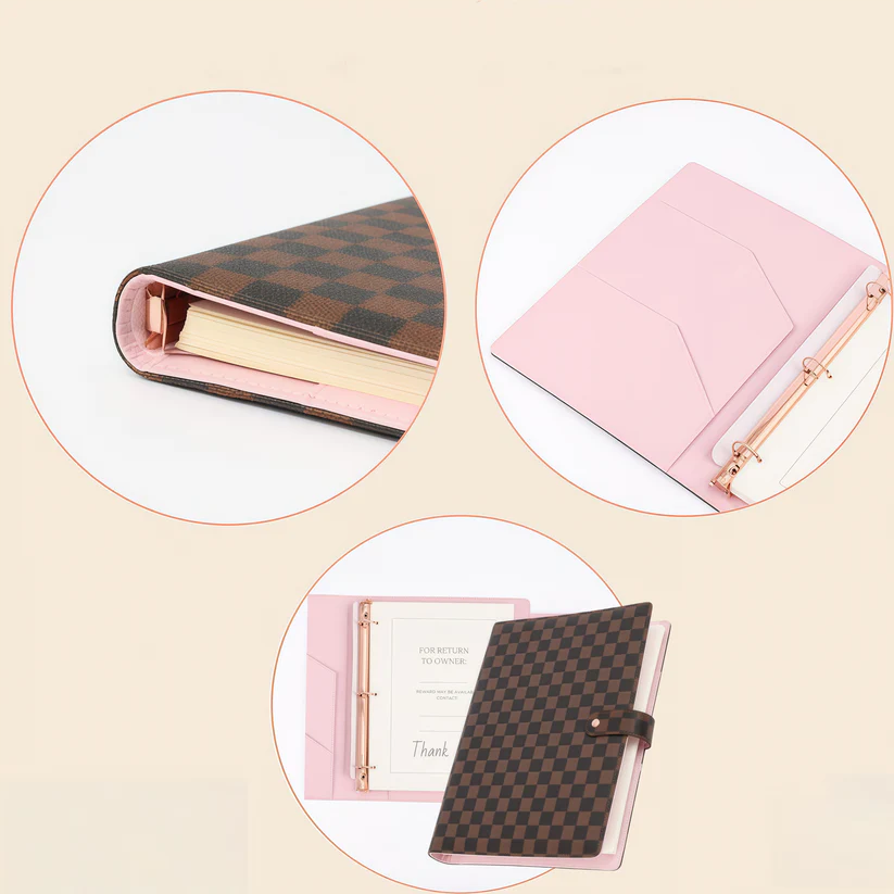 PREMIUM CHECKERED DESIGN: Crafted with a stylish checkered PU leather exterior that adds a touch of luxury to your desk or meetings.