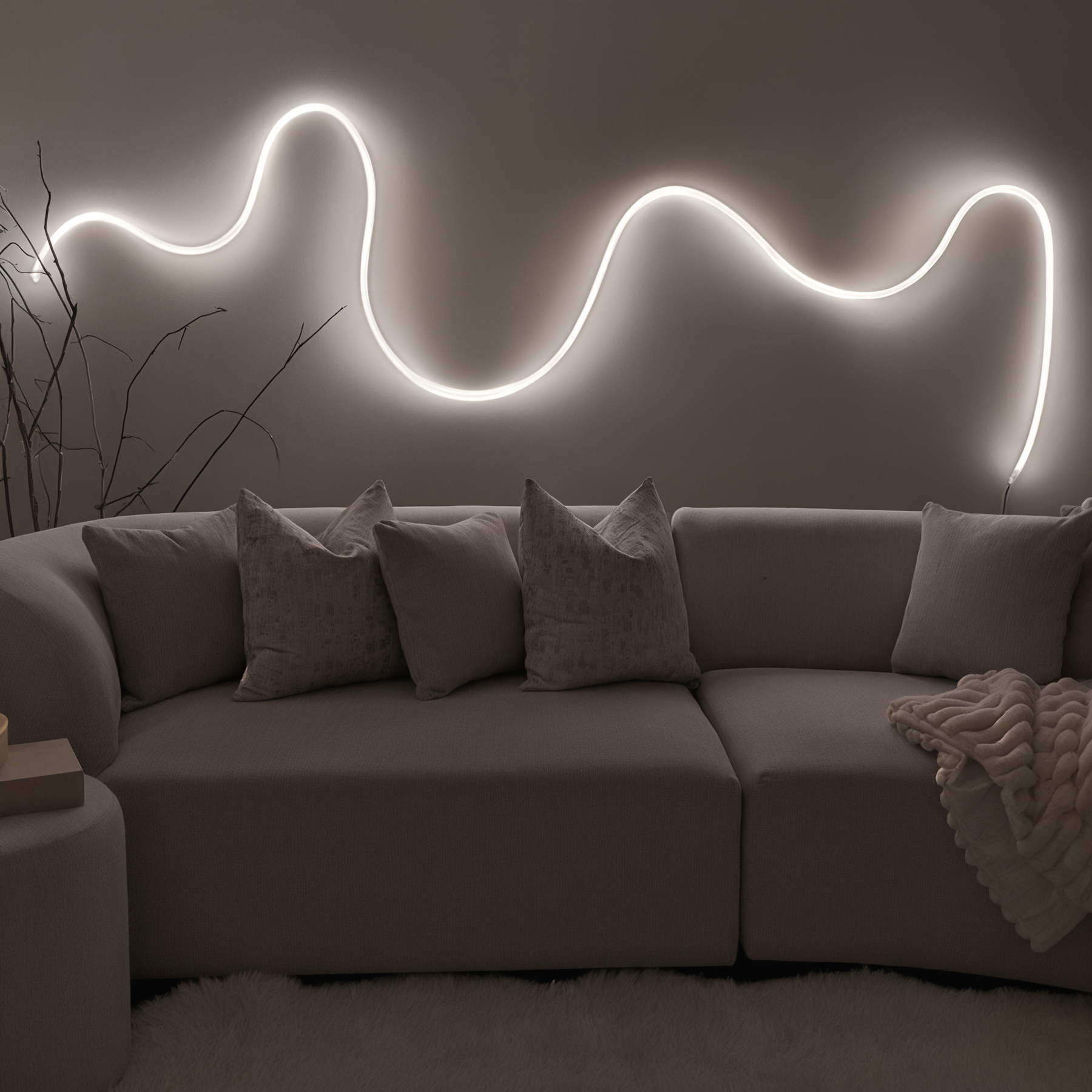 This design allows you to easily stick, power on and change colors, transforming the mood of any room. The long length (implied by image) is perfect for accent lighting around sofas, under cabinets, or along ceilings.