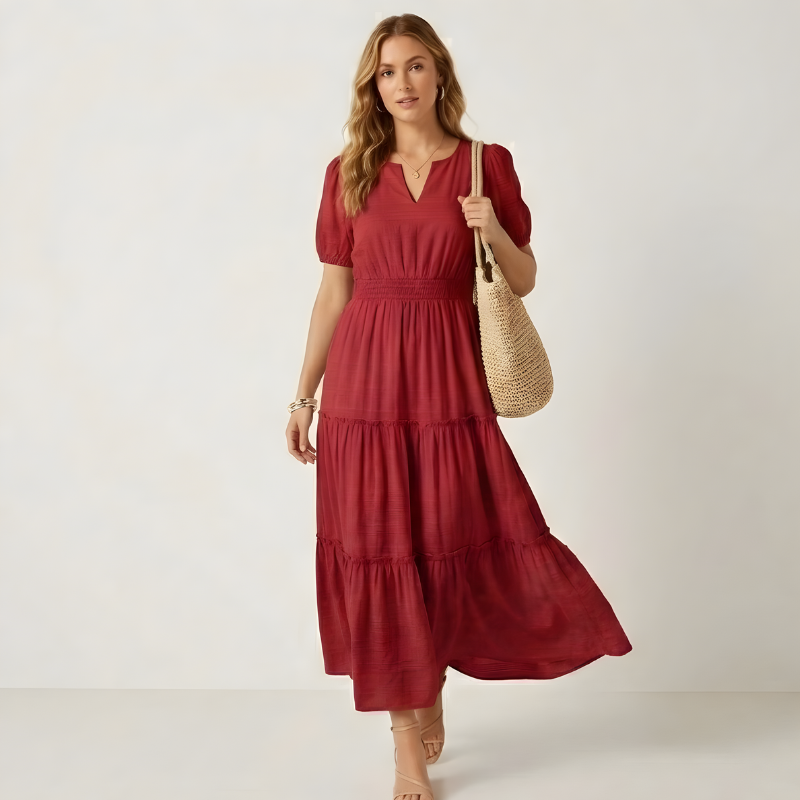 You’ve tried the cute summer dresses before. They looked great online, then arrived thin, unlined, and cheap-feeling. The Corsana™ is different — a fully lined tiered maxi dress with textured stripe fabric that drapes like a boutique find, not a fast-fashion afterthought.