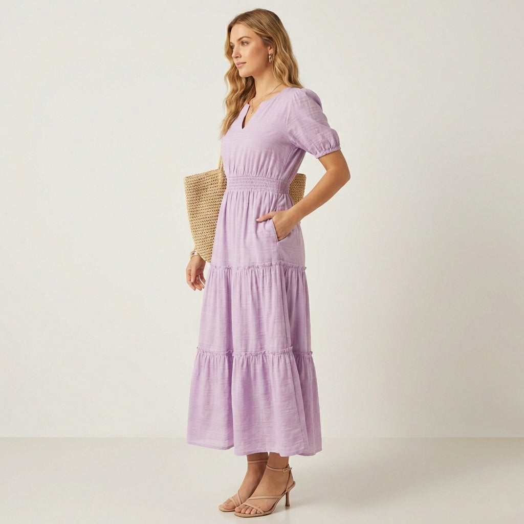 Corsana™ – Tiered Ruffle Lined Maxi Dress with Pockets + 50% OFF – Ausbury