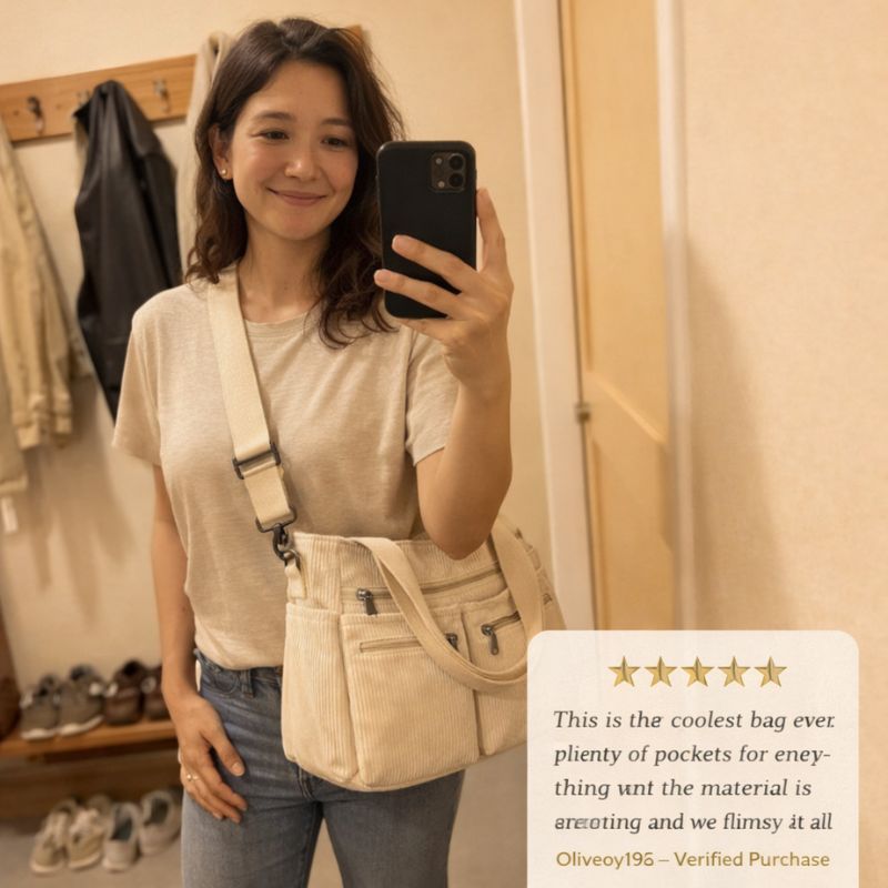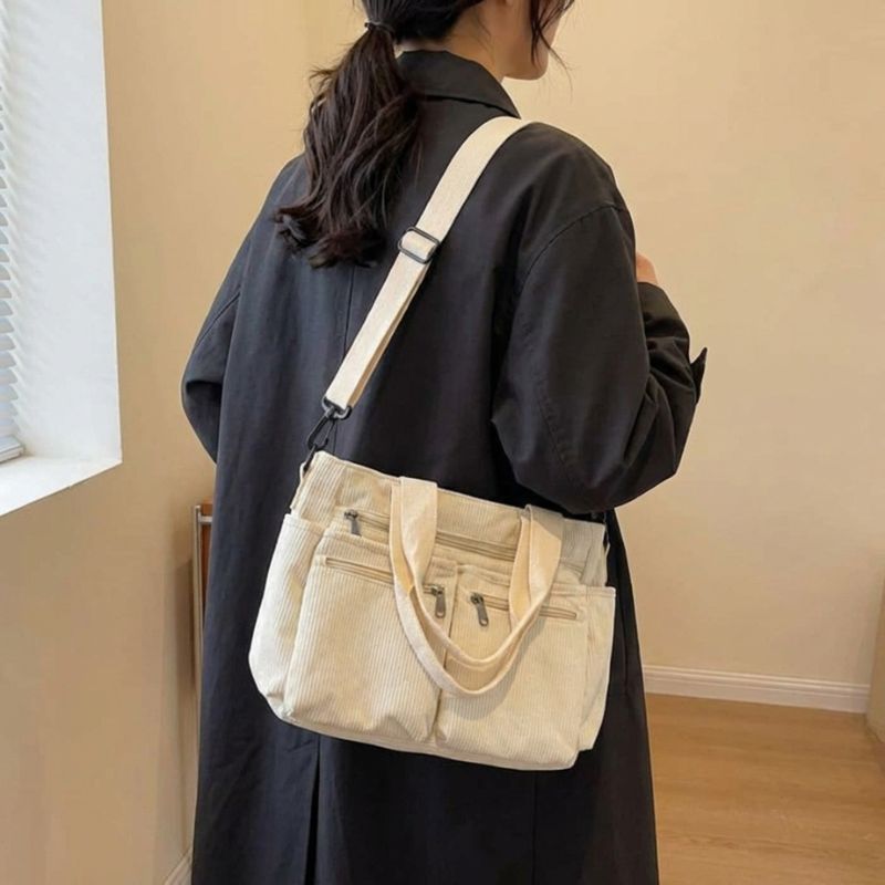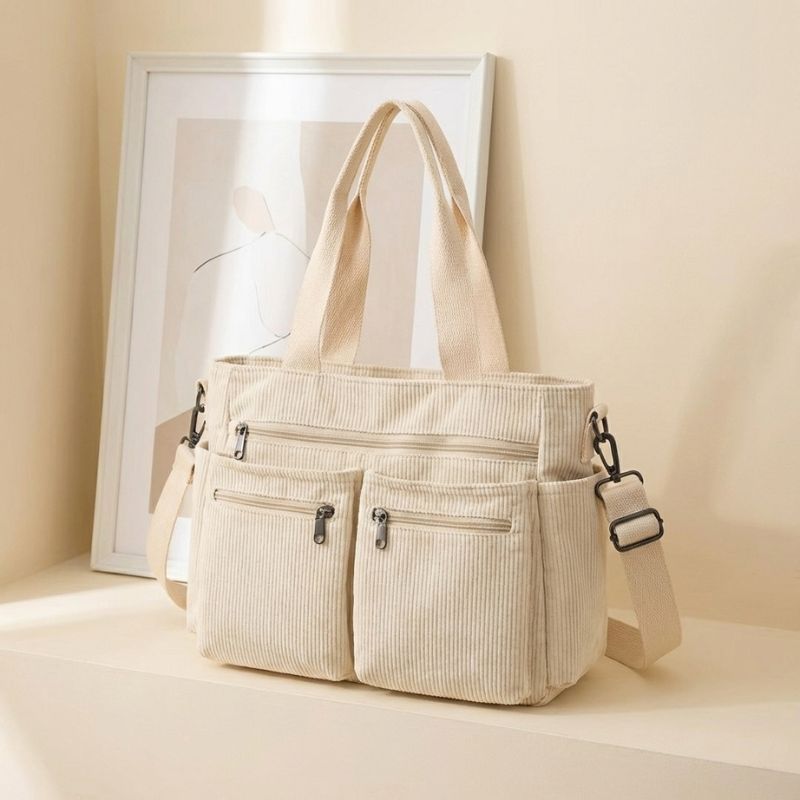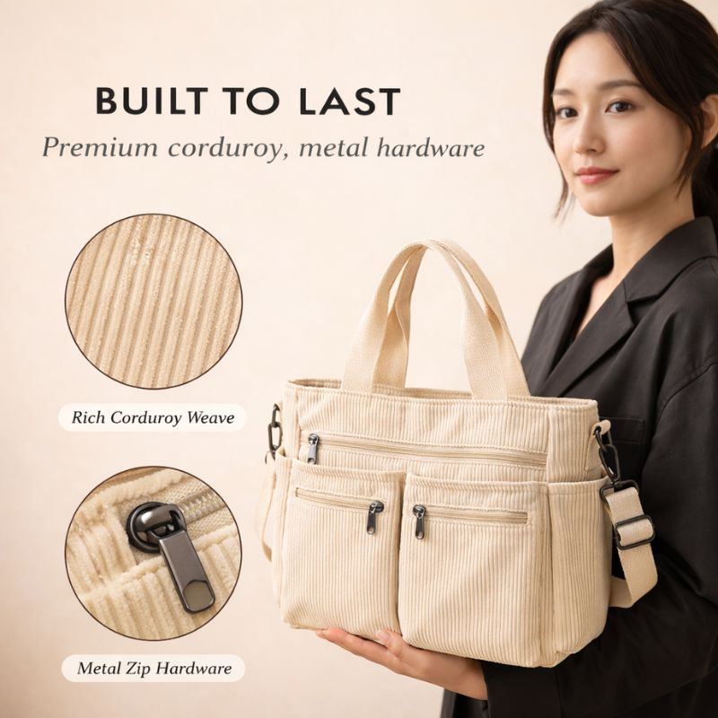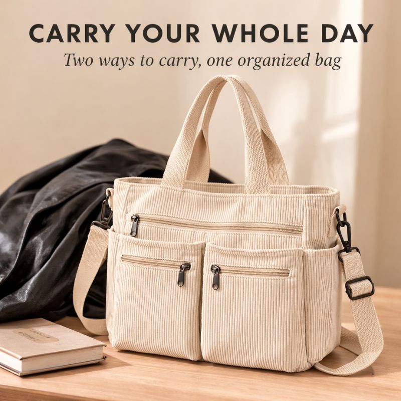 Tuckwell™ – Corduroy Multi-Pocket Tote Bag with Crossbody Strap + 50% OFF