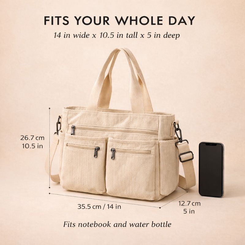 Tuckwell™ – Corduroy Multi-Pocket Tote Bag with Crossbody Strap + 50% – Ausbury