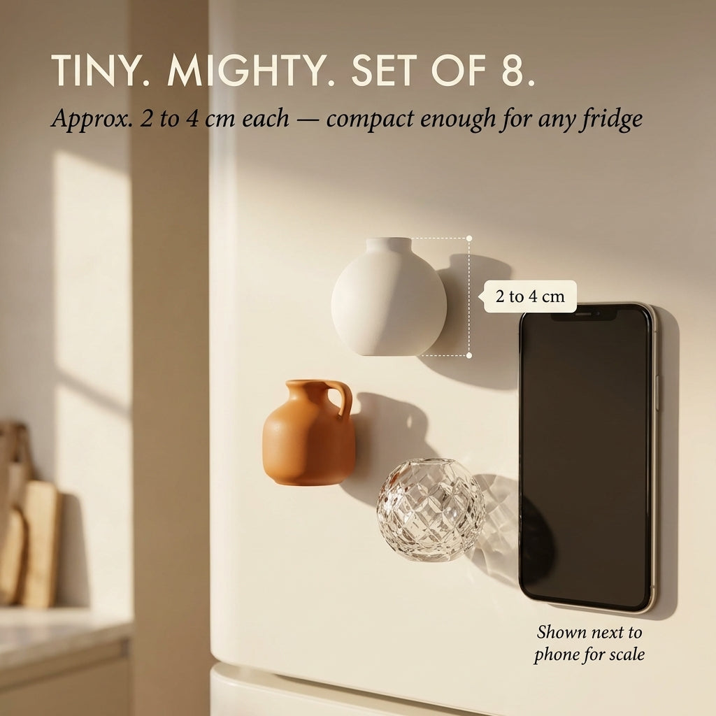 ✔ YOUR FRIDGE LOOKS BORING — TURN IT INTO SOMETHING YOU'RE PROUD OF Each Bloomcroft™ vase is shaped and glazed like a real decorative piece — not a plastic clip or a flat magnet. Eight unique shapes (teardrop glass, round ceramic, mini jug, and more) create an instant gallery effect on any steel surface. One customer called it "much nicer than mismatched advertisement magnets littering the fridge."
