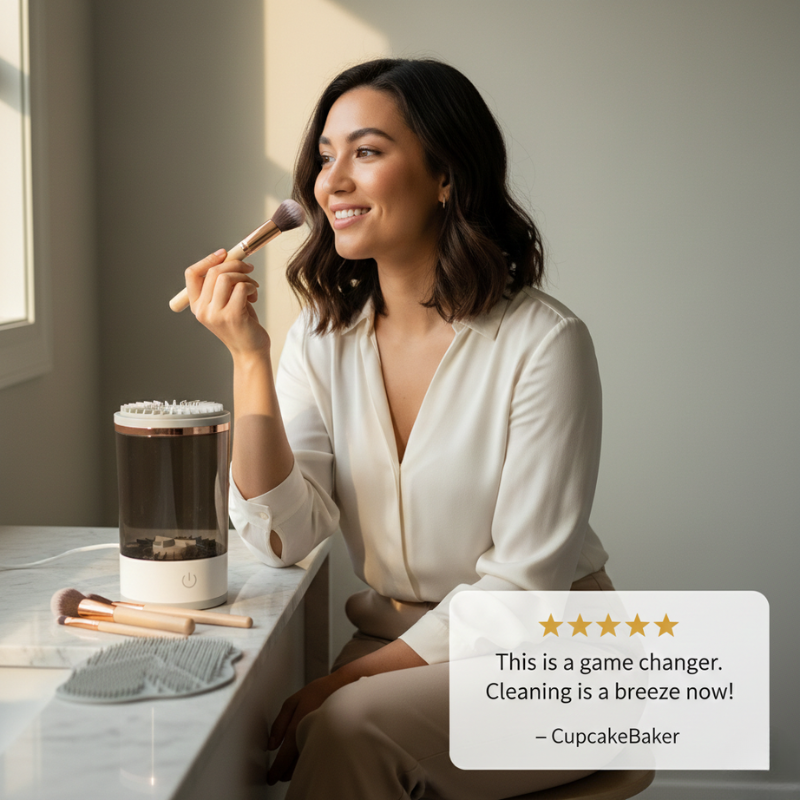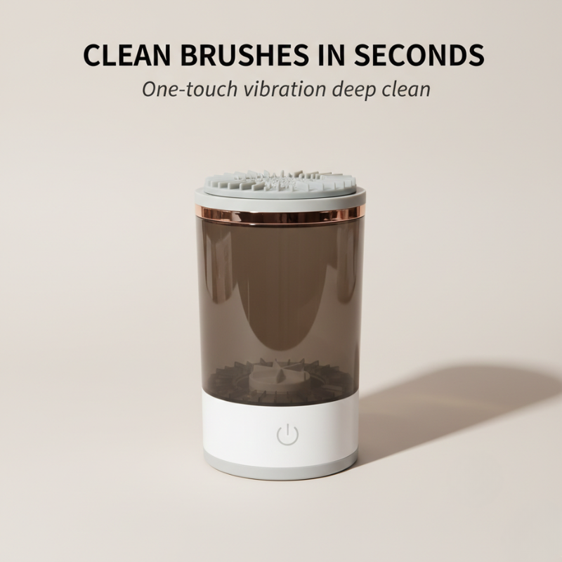 That's not a willpower problem — it's a tool problem. Until now, cleaning makeup brushes meant hunching over a sink with soap and your bare hands, scrubbing bristle by bristle until your fingers pruned.