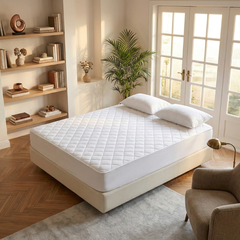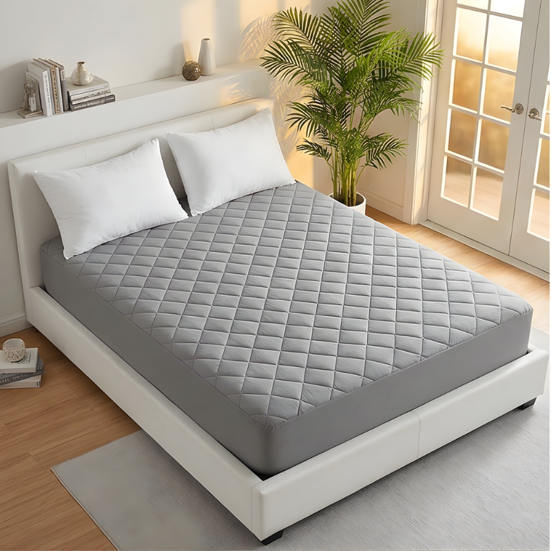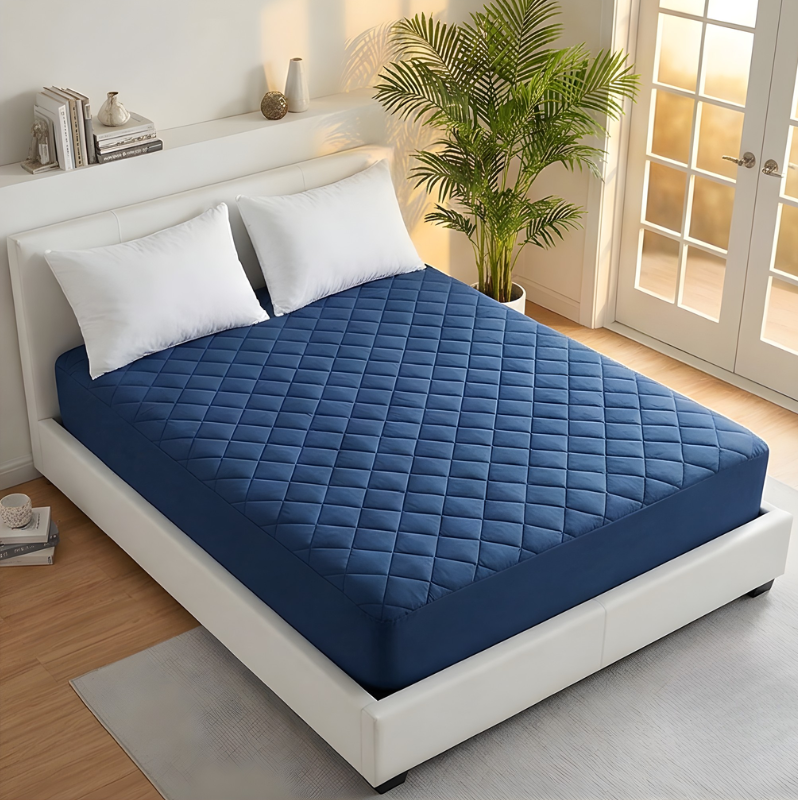 The diamond-quilted surface adds a soft, padded layer of comfort you can actually feel, while the waterproof backing underneath silently blocks every drop of liquid, sweat, and moisture from ever reaching your mattress — no crinkling, no heat, no plastic feeling.