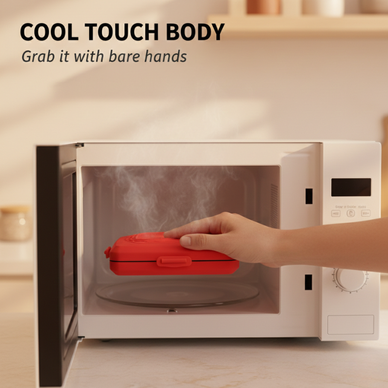✔ SAFE TO GRAB STRAIGHT FROM THE MICROWAVE — NO BURNS, NO WORRY - The food-grade silicone body stays cool enough to grip while the metal plates do the searing inside, so you can pull your Crispwell™ out confidently without oven mitts or awkward fumbling.