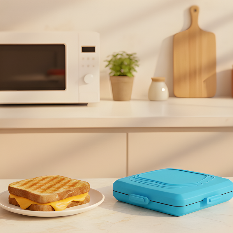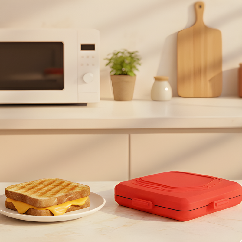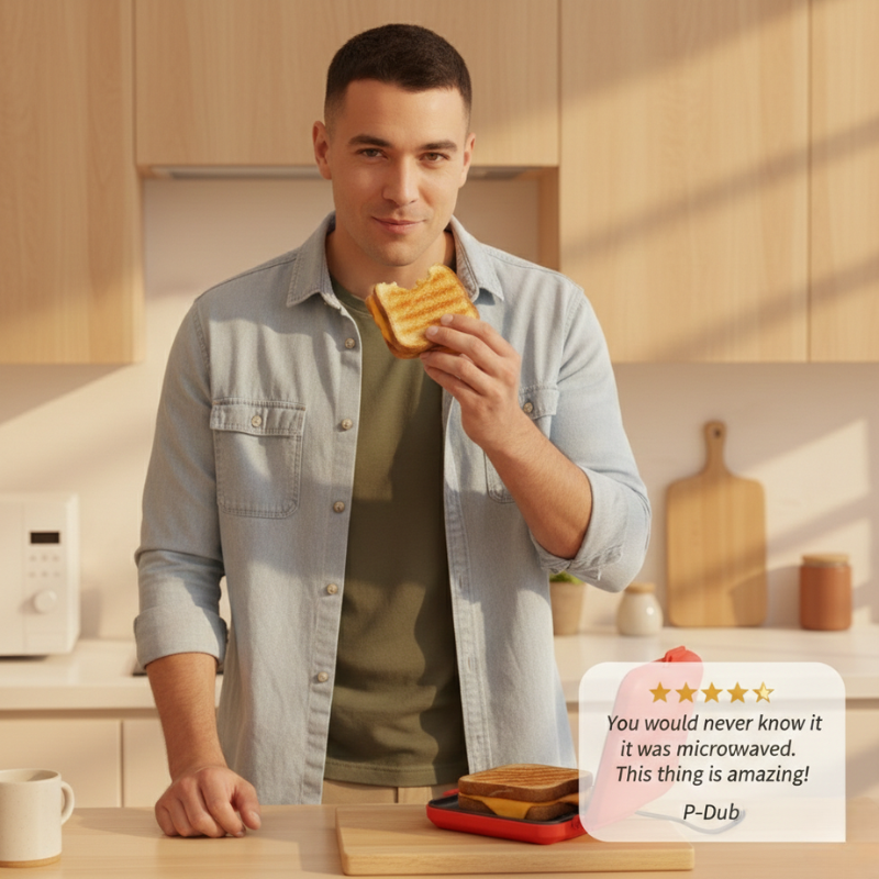 ✔ SKIP THE STOVETOP, THE PREHEAT, AND THE MESS — READY IN MINUTES - Just load your sandwich, close the lid, and microwave for 2–3 minutes. No preheating, no flipping, no greasy pans — the non-stick grill plates release your food instantly and wipe clean in seconds.