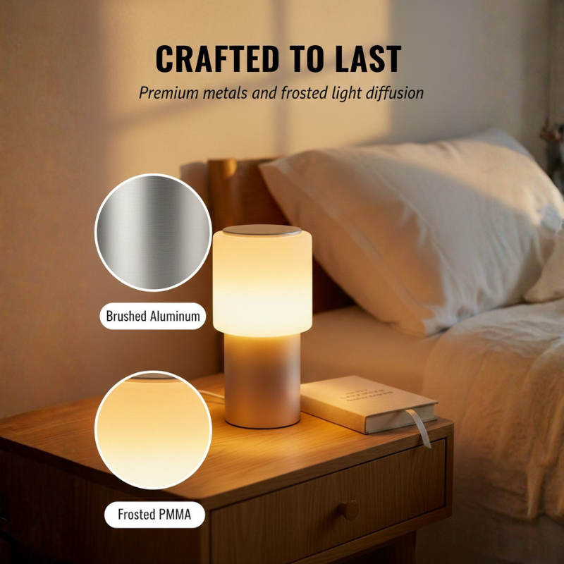 ✔ LOOKS LIKE A $200 DESIGNER LAMP, NOT A GIMMICKY GADGET - Crafted from brushed aluminum and frosted PMMA, the Ember™ has the weight, finish, and minimalist profile of a high-end table lamp — place it on a nightstand, a dinner table, or a shelf and it belongs there.