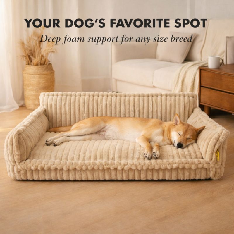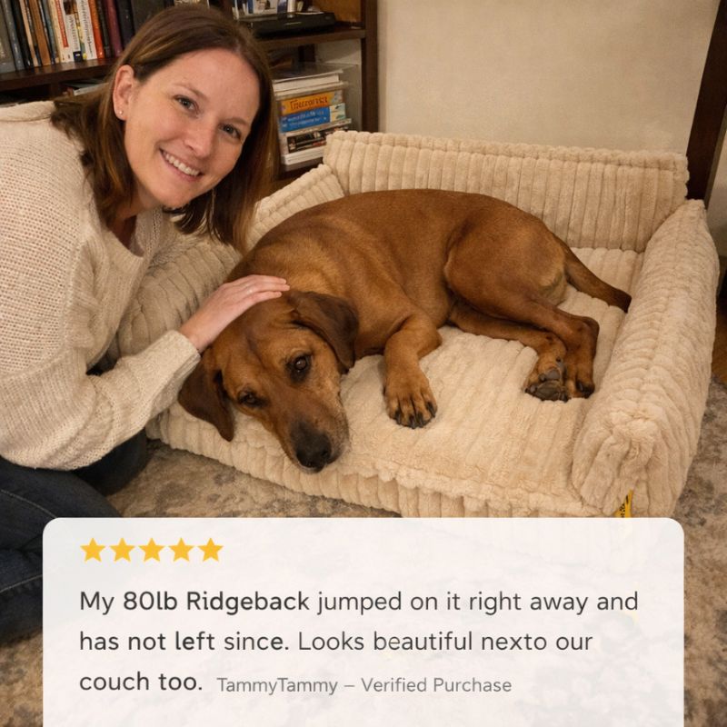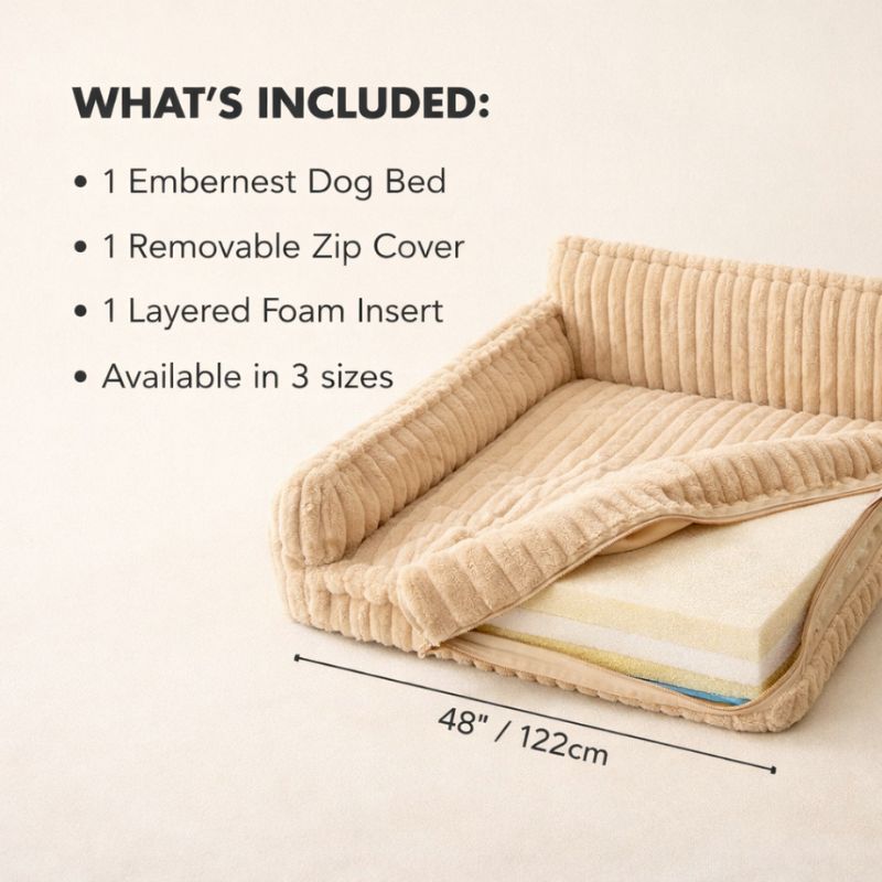 Now there's the Embernest™ — a sofa-style dog bed with a soft ribbed cover and real orthopedic foam inside, built to cradle your dog from every side.
