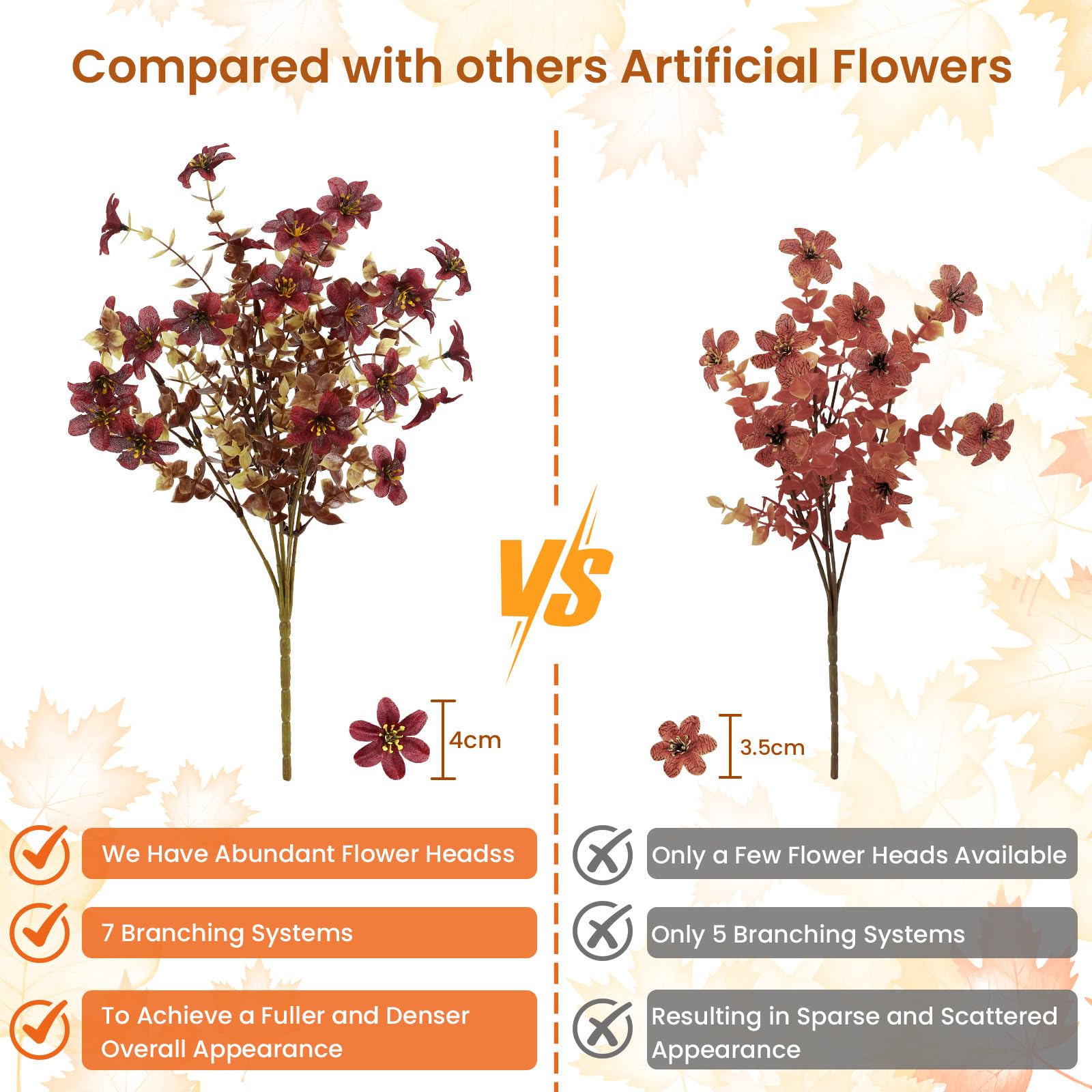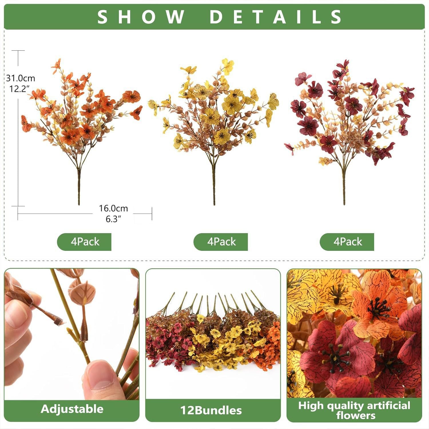 ✔ GET HYPER-REALISTIC ELEGANCE THAT TRICKS THE EYE The silk blooms have a veined texture and color gradation, while flexible steel-wire stems bend to 180° to create natural, overflowing arches that look completely real.
