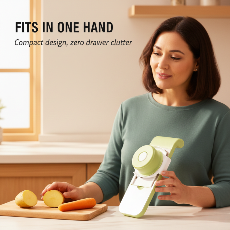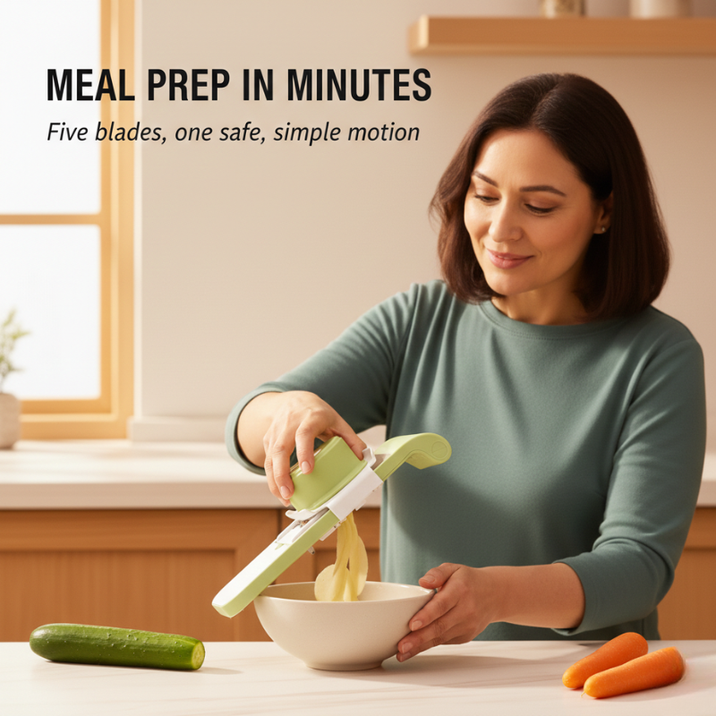 The Parewell™ 5-in-1 Vegetable Slicer replaces that entire drawer of risky, single-use kitchen gadgets with one compact, 304 stainless steel tool that does everything.
